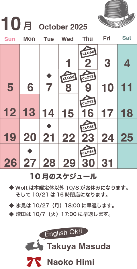 Depending on how busy it is, the last appointment time may be earlier. We apologize for any inconvenience this may cause. Please feel free to stop by! Payment is only accepted in cash.